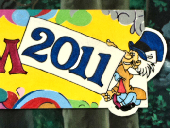 The famous cat in Alice in Wonderland, the Cheshire Cat is shown in its early stages of creating this backdrop. The materials used are made of styrofoam, colored and brushed with house paint and glitters were added to it.
