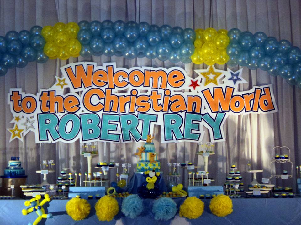This backdrop was used for Robert Rey’s baptismal celebration.. The backdrop is made of styrofoam, to be colored and brushed with house paint.