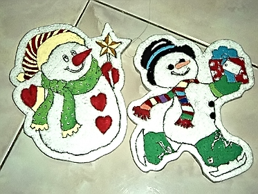 These snowmen backdrops were used for a Christening event. The materials used are made of styrofoam, colored and brushed with house paint and glitters were added to it.