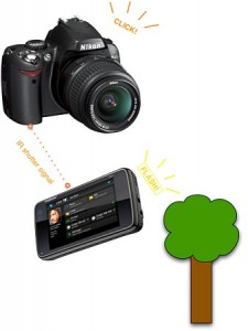 Wow. Talk about remote controlling your Nikon DLSR from a mobile phone. Great news from GSMArena. The widget that the guy from DoItDifferent created should also work with other IR-enabled Nikons so it is not only the D40 owners (the camera used for the demo) that should celebrate the news.