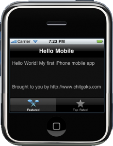 Well, here it is. My very first iPhone application. And when a programmer starts learning any new programming language, it always starts with a hello world. Here is my hello world iPhone app.