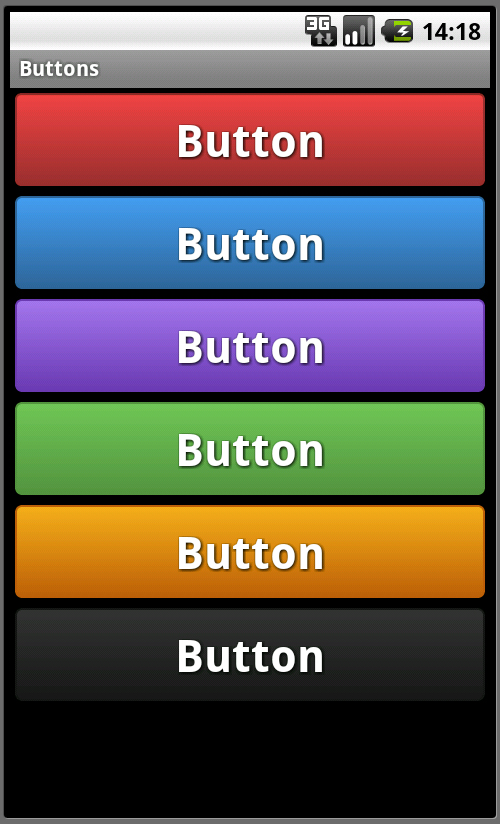No matter what other developers say how easy it is to create a 9 patch image, doing it in XML is better. It is just a matter of copy-paste right? The sample codes for these gradient buttons contain only two color gradients.